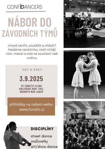 | Místo: ZÁVODNÍ TÝM - CONFIDANCERS - děti Datum: 03.09.2025 - 04.09.2025 Cena: 0 Kč | Natálie Haburová | NÁBOR - do závodních týmů | ZÁVODNÍ TÝM - Funatic Club - děti |
