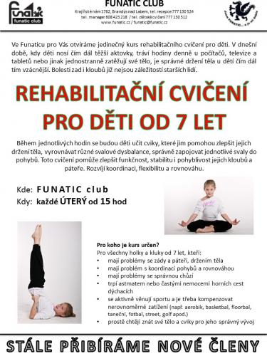 Děti REHAB - pro velký zájem znovu zařazujeme do našeho rozvrhu rehabilitační cvičení pro děti - tentokrát už je kurz otveřen pro děti od 7let