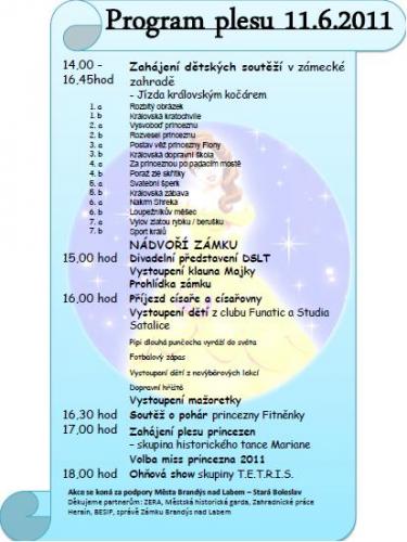 Již tradiční dětská akce s názvem Ples princů a princezen proběhla druhou červnovou sobotu 11. 6. 2011 na zámeckém nádvoří a v Panské zahradě zámku Brandýs nad Labem.